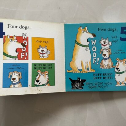 Big dogs, little dogs, short and long hair, powerful woofs, and tiny yaps are packed into this deceptively simple counting book that gets noisier with every page. Perfect for reading to little ones and doggies alike, this book will have the youngest of readers and their grown-ups howling with laughter